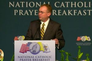 During Thursday’s National Catholic Prayer Breakfast, Speaker of the House Mike Johnson and conservative commentator Micheal Knowles condemned anti-Catholic bias as a threat to America’s identity as “one nation under God.”